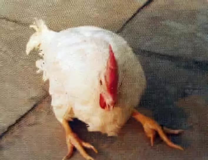 發(fā)病后期(15~30日),雞群采食量下降,出現(xiàn)精神沉郁,癱瘓的病雞。病雞縮頭,行動(dòng)僵直,閉目,呼吸困難。雞體溫升高,手觸翅下,有燙手的感覺,排黃綠色、油綠色糞便,水便或柿子樣糞便,帶有未消化飼料的糞便逐漸增多,病雞逐漸消瘦,一般發(fā)病5~7天死亡。這種情況,蛋殼也發(fā)生明顯變化,蛋殼退色,變軟變酥,變白皮,粉白皮蛋增多,每天雞群的破損蛋率也上升。